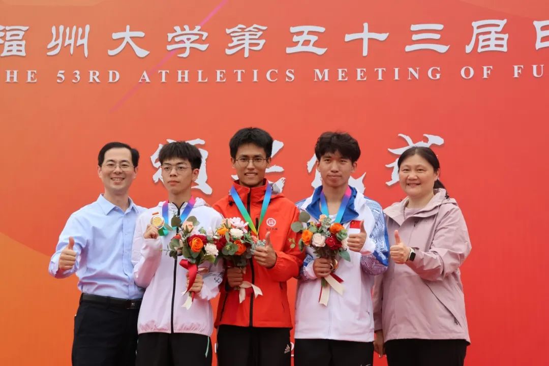 飞人天团王超、陈威、黄圣钊、刘炎骐同学荣获男学甲4×100米接力第一名