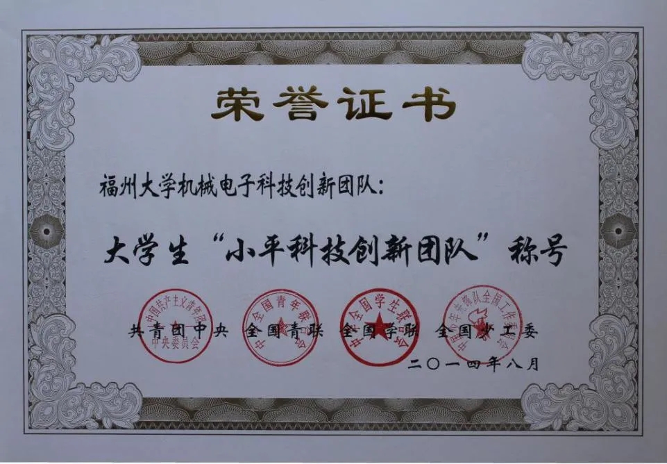 2014年8月,团队获得全国首批大学生“小平科技创新团队”荣誉