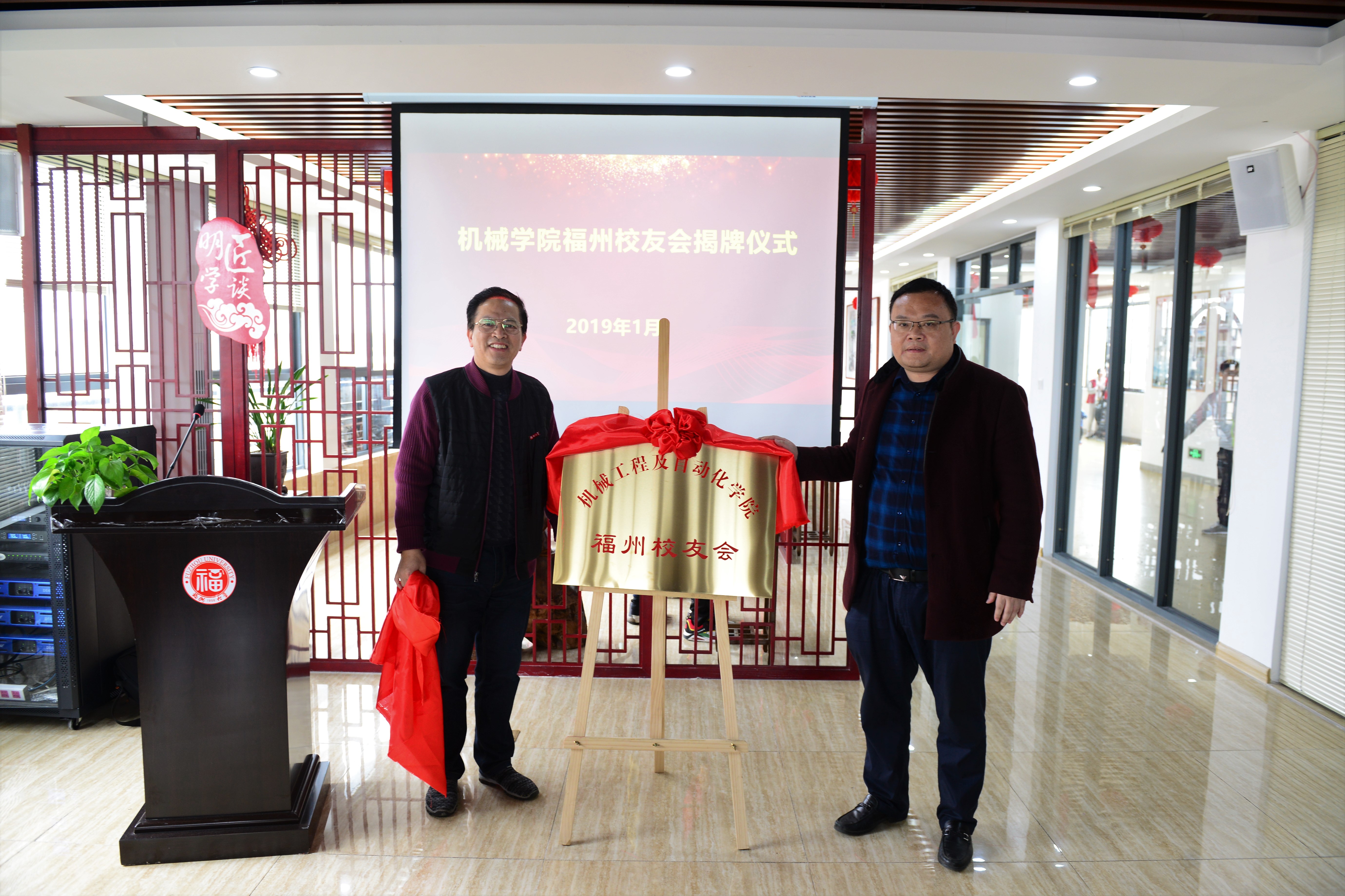 随后,机械学院福州校友会名誉会长林天恩和学院党委书记陈为旭为“机械学院福州校友会”办公室揭牌,成为学院入驻“校友之家”的首个校友会。周辉会长代表学院福州校友对学院党政领导和全院师生给予机械学院福州校友会的关心、指导和帮助表示感谢,他希望福州校友会能进一步架起校友与母校之间的沟通桥梁,不断加强校友和母校之间的合作交流。
